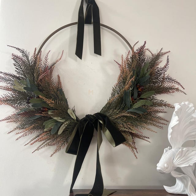 Olive Front Door Wreath,Neutral Olive Branch Hoop Wreath,Modern Farmhouse Olive Branch Wall Decor,Fall Hoop Wreath